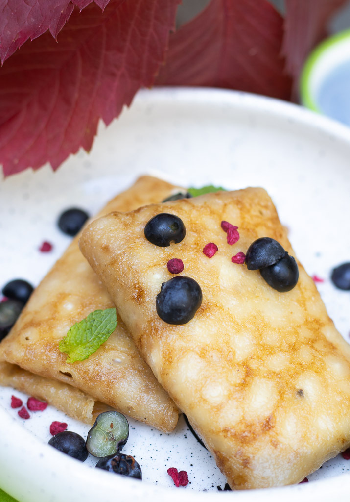 Блины с тофу-творогом и голубым кешью соусом или кокосовой сгущенкой - сытный и вкусный завтрак, который подарит заряд энергии и бодрости на весь день.