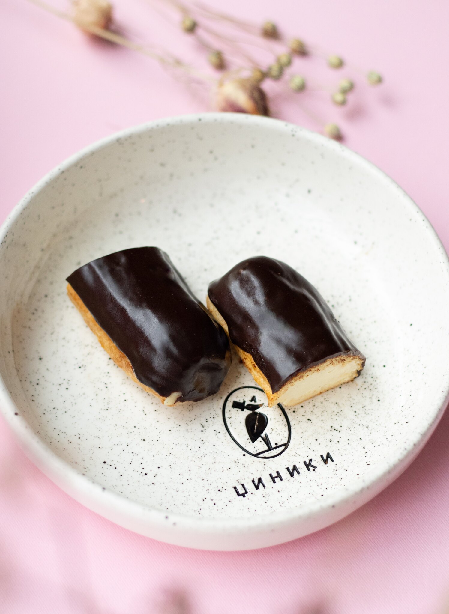 Корпуса эклеров готовим из нутовой и рисовой муки, тапиоки, сиропа топинамбура, рисового молока.