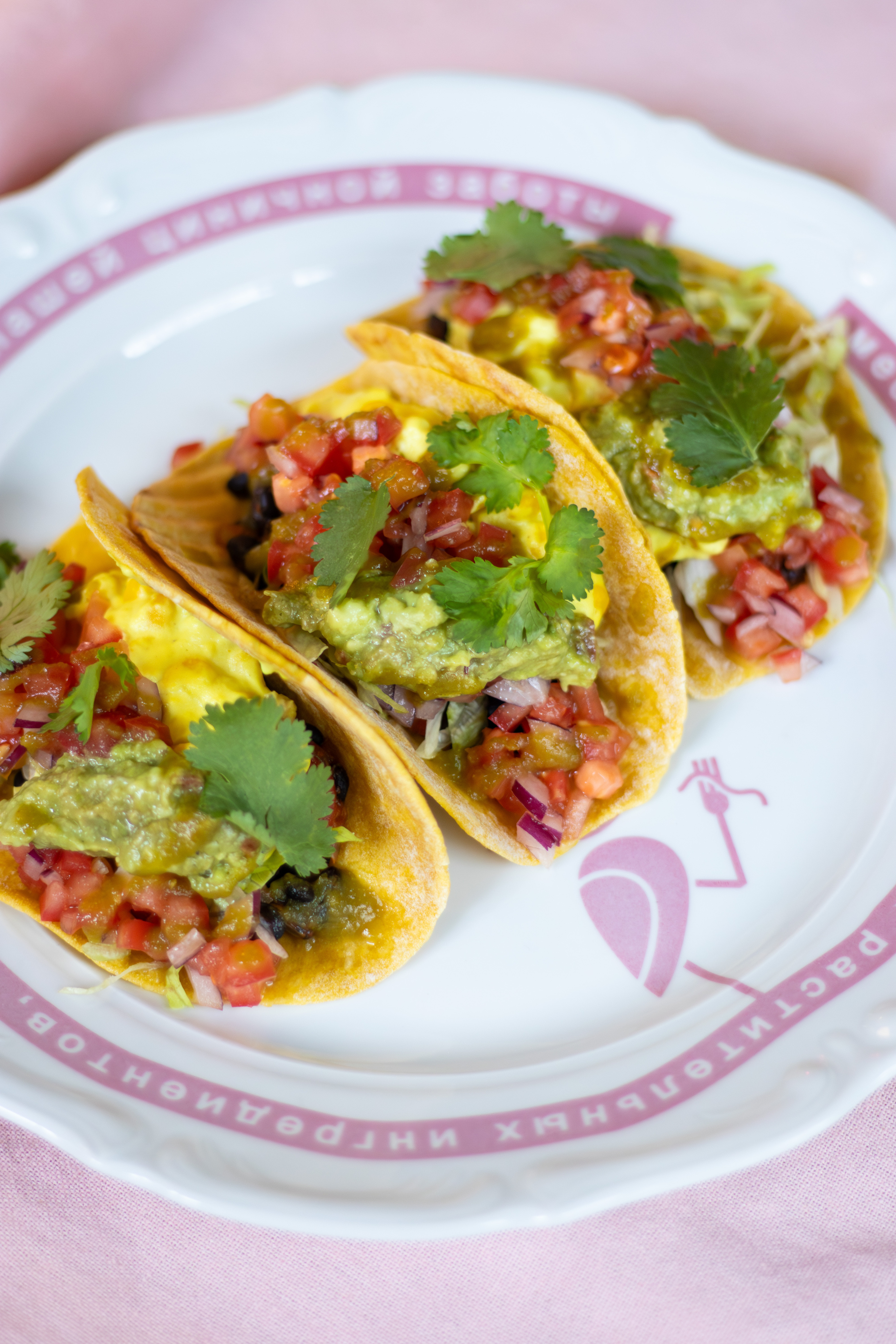 Чёрная фасоль, гуакамоле, веган-сыр, кукуруза, кукурузная лепешка, розовые томаты, красный лук. айсберг, томатный соус, кинза.