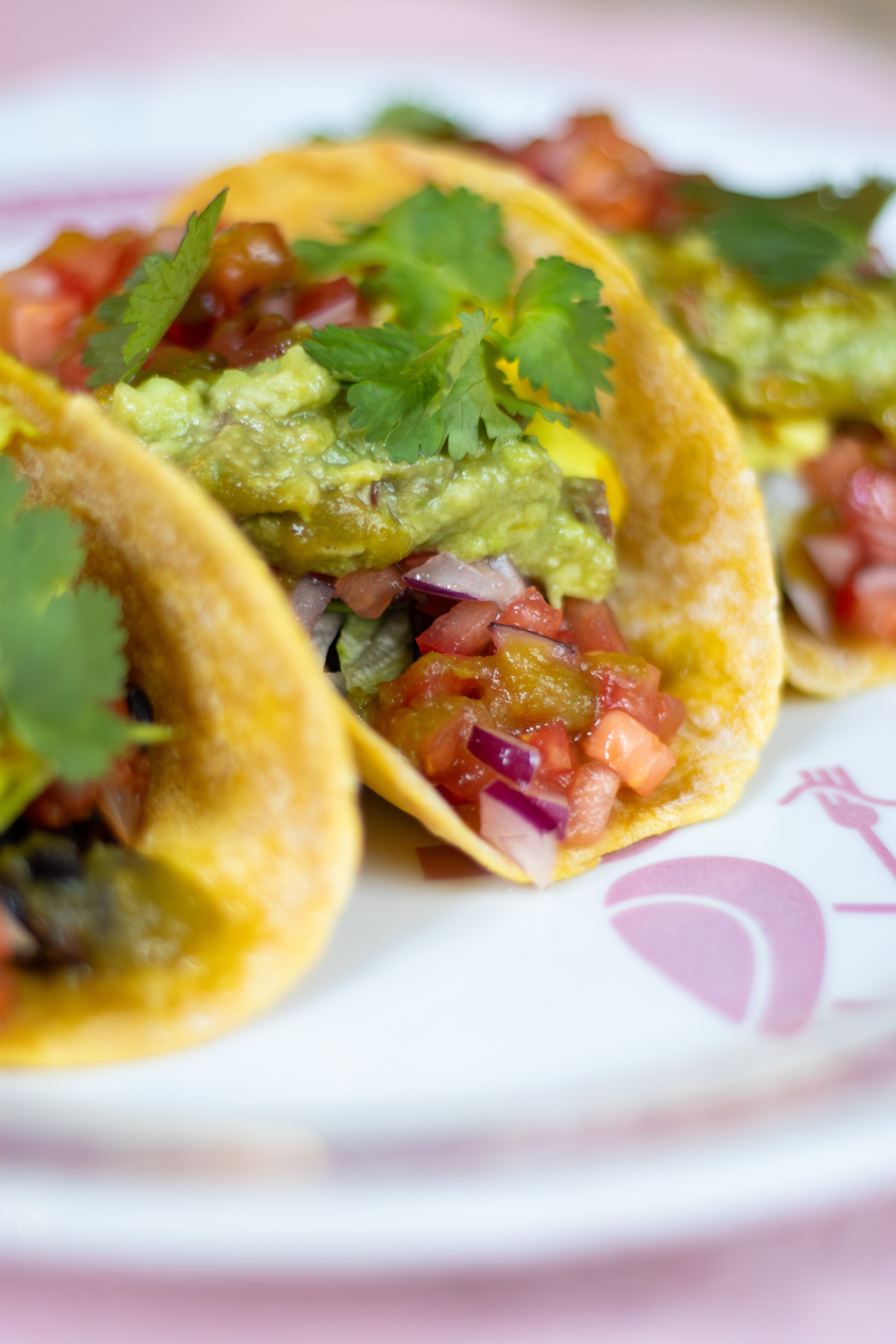 Чёрная фасоль, гуакамоле, веган-сыр, кукуруза, кукурузная лепешка, розовые томаты, красный лук. айсберг, томатный соус, кинза.