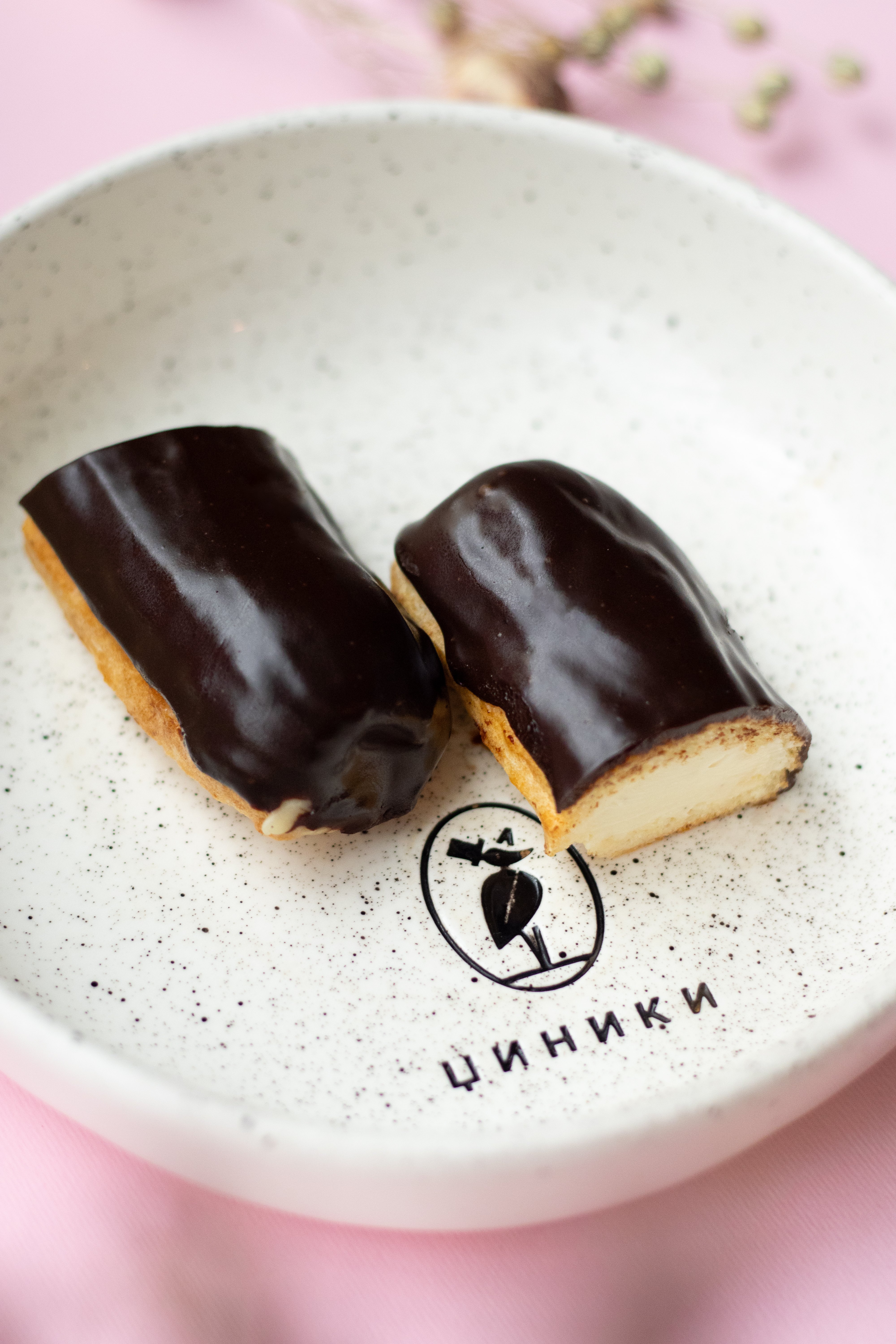 Корпуса эклеров готовим из нутовой и рисовой муки, тапиоки, сиропа топинамбура, рисового молока.